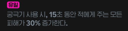 궁극기 사용 시 15초 간 피해 증가가 30% 증가하는 방어구 룬이다. 궁극과 마찬가지로 궁극기가 필수로 사용되는 직업에게 가치가 높다.