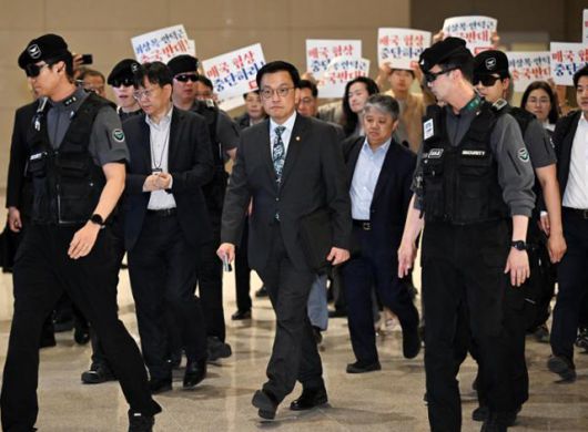 최상목(가운데) 부총리 겸 기획재정부 장관이 22일 인천국제공항 제2여객터미널에서 미국과의 통상협의를 위해 출국하고 있다. 영종도=홍인기 기자 |