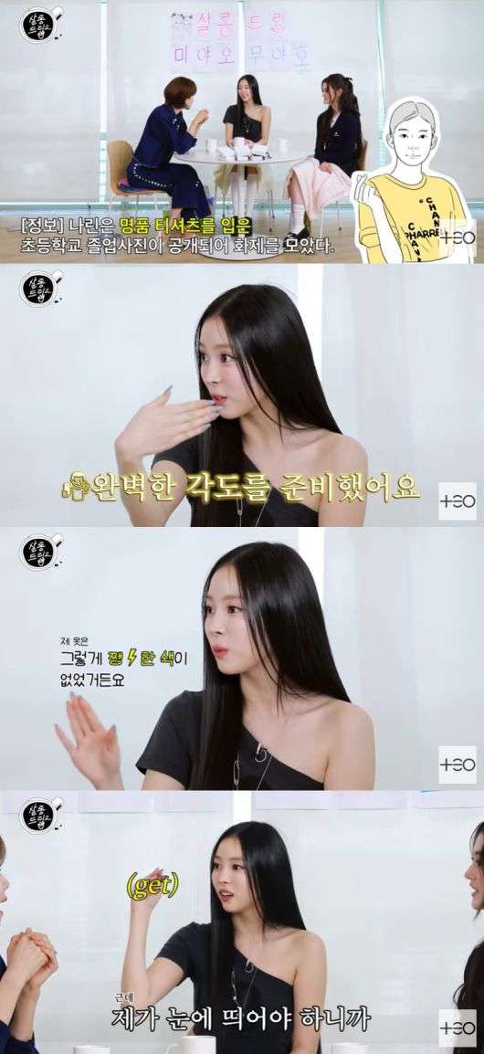 이날 장도연은 "나린 씨의 초등학교 졸업앨범 사진이 굉장히 화제가 됐다"며 나린이 명품 브랜드 샤넬의 노란 티셔츠를 입고 있는 졸업사진 공개돼 이목을 끌었던 바를 언급했다.