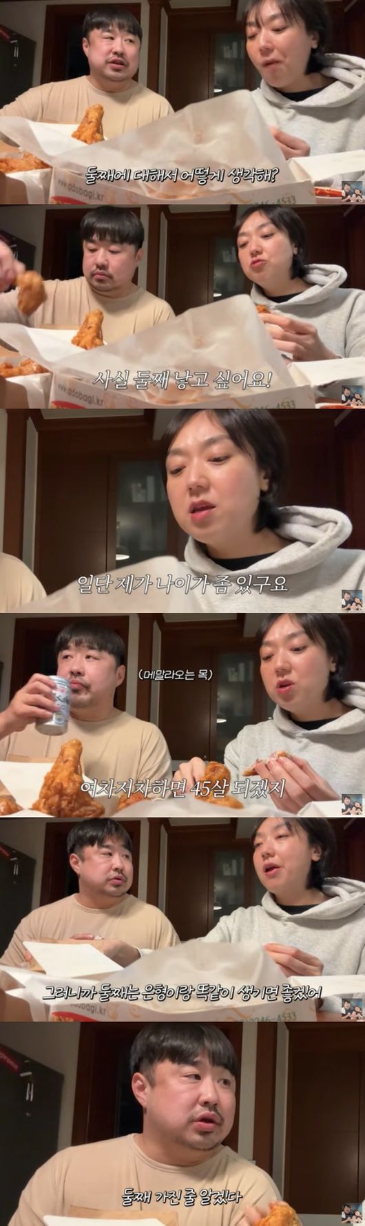 이은형은 “저는 마음 같아서는 사실 둘째 낳고 싶다. 아들이든 딸이든 낳으면 낳으면 좋을 것 같다. 형제의 장점이 또 있다. 근데 제가 나이가 좀 있다. 지금 애를 가져서 내년 초에 낳는다고 해도 벌써 44살이다. 여차저차하면 45살 되겠지”라며 조심스럽게 대답했다.