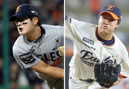 마무리 투수 김서현(21·왼쪽 사진)의 존재감이 크다. 주현상 대신 뒷문을 책임지게 된 김서현은 12경기(10.2이닝) 5세이브 1홀드 평균자책 0.00을 기록 중이다. 이닝당출루허용률(WHIP)이 0.66으로 출루 자체를 거의 허용하지 않는다.