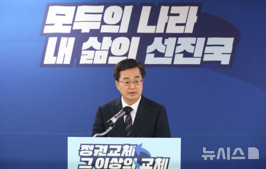 [서울=뉴시스] 조성봉 기자= 김동연 더불어민주당 대선 경선 후보가 22일 오후 서울 여의도 캠프 사무실에서 수도권 공통 공약 및 비정규직 관련 정책 공약을 발표하고 있다. 2025.04.22. suncho21@newsis.com