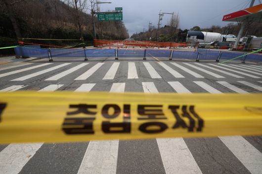 30일 오후 서울 강동구 명일동 지반침하(싱크홀) 사고 현장 모습. 2025.03.30 뉴시스 |
