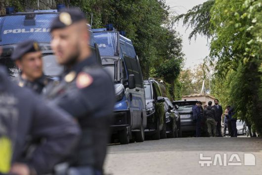 [로마=AP/뉴시스] 미국과 이란은 23일(현지 시간) 개최하기로 했던 핵 협상 전문가 회의를 26일로 연기하기로 했다. 사진은 19일 미국과 이란 사진은 2차 핵 협상을 하는 동안 이탈리아 로마 주재 오만 대사관 외곽을 순찰하는 경찰 모습. 2025.04.23.
