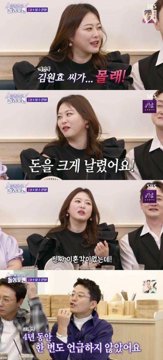 이상민은 “이혼하고 싶은 적이 있었냐”라고 물었고, 심진화는 “저는 있다. 김원효 씨가 몰래 돈을 크게 날렸다. 솔직히 하늘에 맹세코 남편이 돈을 날려서가 아니라 나 몰래 그런 일을 할 수 있다는 사람이라는 게 너무 충격이었다. 진짜 이혼각이었는데 10년 동안 단 한 번도 불행하지 않았다. 이 정도 한 번은 참아야 한다고 (생각했다). 4년 동안 한 번도 언급하지 않았다”라고 말했다.