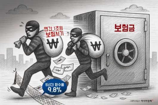 아시아경제가 이정문 더불어민주당 의원실로부터 단독 입수한 자료에 따르면 2020년부터 2024년까지 최근 5년간 국내 대형 보험사 10곳이 수사기관에 의뢰한 보험사기혐의액은 1조2031억원이다. 이 중 환수한 보험금은 1175억4000만원으로 9.8%에 불과했다. 같은 기간 생명보험사 5곳은 1450억원 중 13.5%인 195억1000만원, 손해보험사 5곳은 1조581억원 중 9.26%인 980억3000만원을 환수했다. 환수율이 낮으면 그만큼 보험사는 손실로 인식해 보험료 인상 요인으로 작용한다.