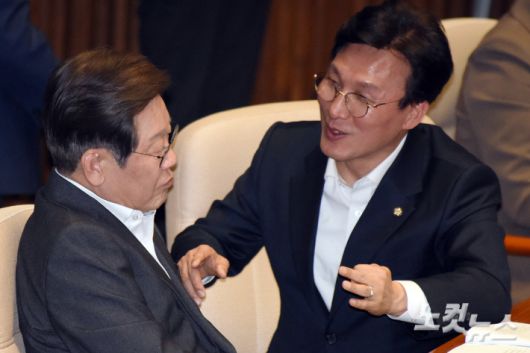 17일 서울 여의도 국회에서 열린 제424회 국회(임시회) 제5차 본회의에서 더불어민주당 이재명 전 대표와 김민석 최고위원이 대화를 하고 있다. 윤창원 기자 |