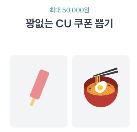 '같은 그림 뽑고 CU 할인받기' 이벤트는 해당 뽑기에 참여한 사용자에게 리워드를 제공하는 이벤트다. 뽑은 그림에 따라 토스페이 쿠폰이 500원에서 최대 5만 원까지 제공된다. 1회의 기본 도전 기회 외에 친구 초대시 추가 기회가 제공된다.
