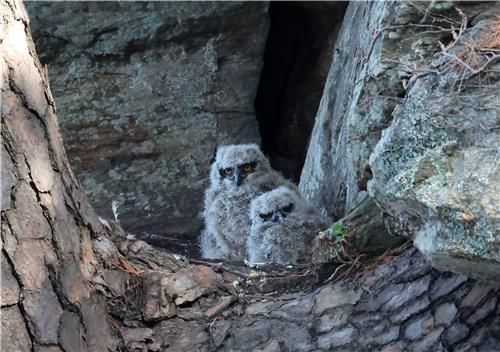 천년 고찰 절벽에 둥지 튼 수리부엉이 |