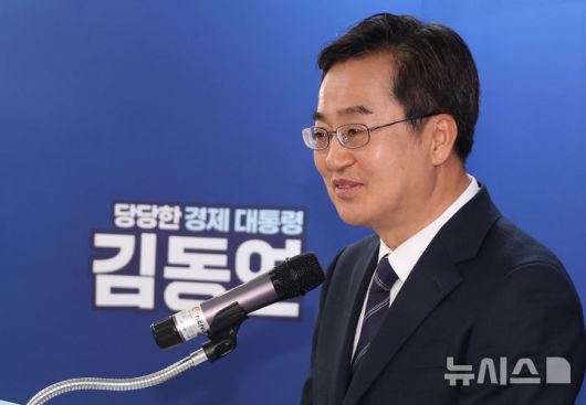 [서울=뉴시스] 조성봉 기자= 김동연 더불어민주당 대선 경선 후보가 22일 오후 서울 여의도 캠프 사무실에서 수도권 공통 공약 및 비정규직 관련 정책 공약을 발표하고 있다. 2025.04.22. suncho21@newsis.com |