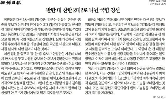 조선 = 반탄 대 찬탄 2대2로 나뉜 국힘 경선