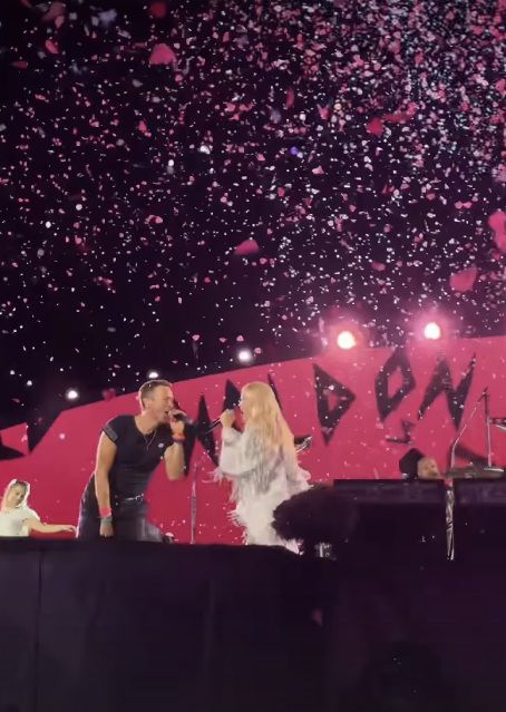 크리스 마틴은 건반 앞에 앉아 “아파트! 아파트!”를 외치며 로제의 메가 히트곡 ‘아파트’를 불렀다. 그때 로제가 무대에 깜짝 등장했고, 이들은 ‘아파트’로 협업 무대를 펼쳤다.