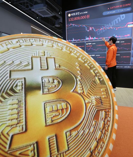(서울=뉴스1) 김진환 기자 = 23일 서울 서초구 빗썸라운지 전광판에 비트코인 등 가상자산 시세가 표시되고 있다. 비트코인 가격이 약세장인 미국 증시 속에서도 반등하며 한 달 반 만에 9만 달러를 돌파했다. 비트코인이 9만 달러 선을 넘어선 것은 지난 3월 6일 이후 46일 만이며, 장중 한때 9만1500달러대까지 상승하기도 했다. 비트코인은 최근 트럼프 전 대통령의 관세 부과 예고에도 불구하고, 이달 초 저점 대비 20% 넘게 상승했다. 2025.4.23/뉴스1