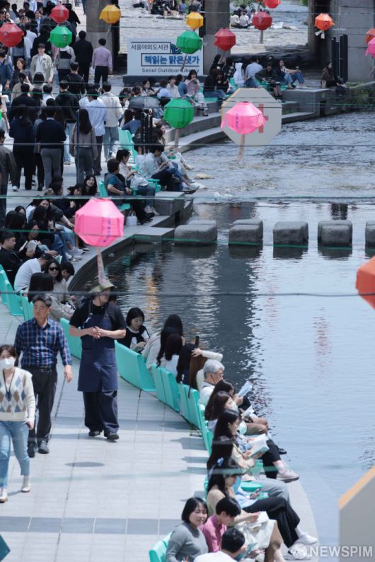 [서울=뉴스핌] 이길동 기자 = 서울야외도서관이 동절기 휴장을 마치고 '세계 책과 저작권의 날'인 23일 2025년 운영을 시작했다. 청계천 '책 읽는 맑은냇가를 찾은 시민들이 책을 읽고 있다. 서울시는 '광화문 책마당'과 청계천 '책 읽는 맑은냇가'는 23일 개장하고, 서울광장 '책 읽는 서울광장'은 5월 4일부터 문을 연다고 밝혔다.2025.04.23. gdlee@newspim.com