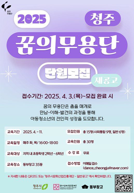 꿈의 무용단 청주 단원 모집 포스터.(한국교원대학교 제공. 재판매 및 DB금지)/뉴스1 |