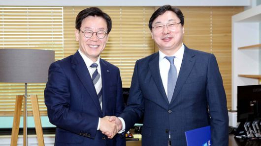 2018년 7월 당시 경기도지사였던 이재명 더불어민주당 대표가 집무실에서 이화영 전 당시 평화부지사에게 임용장을 수여하고 있다. 사진 경기도 |