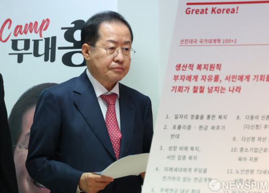 [서울=뉴스핌] 이호형 기자 = 홍준표 국민의힘 대선 경선 후보가 21일 오전 서울 여의도 캠프 사무실에서 '선진대국시대 복지 분야 비전발표회' 기자회견을 위해 입장하고 있다. 2025.04.21 leemario@newspim.com |