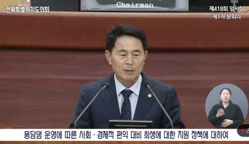 이어 "강원도만 하더라도 소양강댐 수익의 30%를 지역사회에 환원하는 방안을 논의하고 있다"며 "이제라도 댐 주변 지역에 대한 합리적 보상과 발전을 위한 제도적 방안을 마련하고, 전북도도 용담댐 수익 환원에 적극적으로 나서야 한다"고 주장했다.