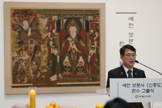 대한불교조계종은 23일 서울 종로구 한국불교역사문화기념관에서 보문사 신중도의 환수 고불식(告佛式)을 열었다.