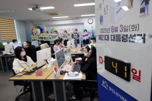 경기 수원시 경기도선거관리위원회에서 사이버공정선거지원단이 오는 6월 3일 실시하는 제21대 대통령선거와 관련한 온라인 모니터링을 하고 있다. 사진=연합뉴스 |