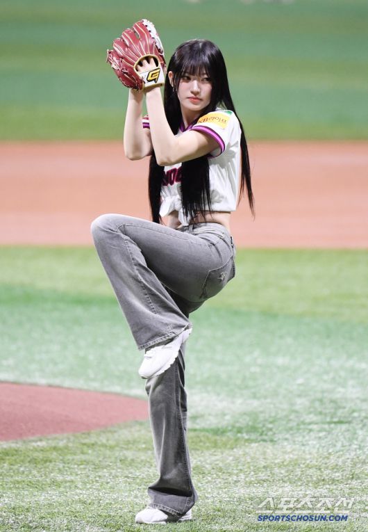 23일 서울 고척스카이돔에서 열린 두산-키움전. 걸그룹 빌리의 시윤이 시구하고 있다. 고척=정재근 기자 cjg@sportschosun.com/2025.4.23/ |