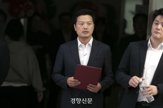 2023년 10월11일 김태우 당시 강서구청장 보궐선거 후보자가 진교훈 더불어민주당 후보에게 큰 표 차이로 지는 결과가 나오자 패배를 인정하는 연설을 하기 위해 강서구 마곡동 선거사무소로 들어오고 있다. 사진공동취재단 |