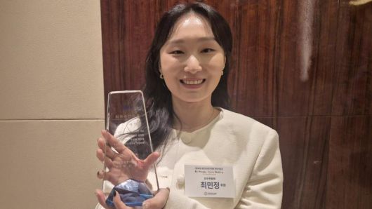 ▲ 쇼트트랙 국가대표 최민정이 23일 서울 중구 웨스틴 조선호텔에서 열린 2025 빙상인의 밤 행사에서 최우수선수상을 받은 뒤 포즈를 취하고 있다.