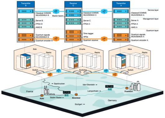 영국의 도시바 유럽 케임브리지 연구소와 폴란드 포즈난 슈퍼컴퓨팅 센터 등 공동 연구진은 이 같은 실험 결과를 담은 논문을 24일 국제학술지 ‘네이처’에 발표했다. 연구진은 유럽 내 연구용 상용 통신망인 제앙(GÉANT) 네트워크를 활용해 254㎞ 떨어진 거리에서 양자 암호키 분배(QKD)에 성공했다. 이는 실험실이 아닌 실제 통신 환경에서 양자통신을 구현한 최장 거리 기록이다.