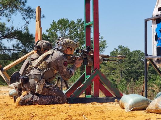 1군단 특공연대 저격수팀이 지난 4~10일 미국 조지아주 포트무어에서 열린 ‘2025년 미국 국제 저격수대회’에서 국제부문 1위를 차지했다고 육군이 23일 밝혔다. 사진은 저격수팀 장제욱 중사와 박대운 상사가 타깃을 저격하고 있는 모습. [사진 육군]