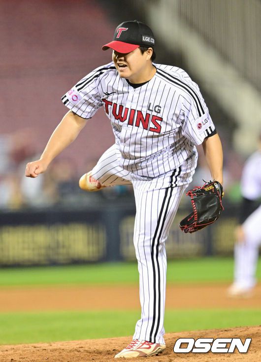 [OSEN=잠실, 김성락 기자] 23일 오후 서울 잠실야구장에서 2025 신한 SOL Bank KBO리그 LG 트윈스와 NC 다이노스의 경기가 열렸다.LG는 송승기, NC는 로건을 선발 투수로 내세웠다.9회초 LG 장현식이 마운드에 올라 힘차게 공을 뿌리고 있다. 2025.04.23 / ksl0919@osen.co.kr |