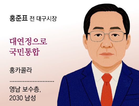 홍 전 시장의 핵심 지지층은 영남과 2030 남성이다. 앞서 2017년 당 대선 후보, 5선 국회의원, 당 대표 2회, 경남도지사, 대구시장 등을 거치면서 영남권에 지지층을 쌓아왔다. 2030 청년층과는 지난 대선 때 웹사이트 ‘청년의꿈’을 개설해 소통을 이어가고 있다.