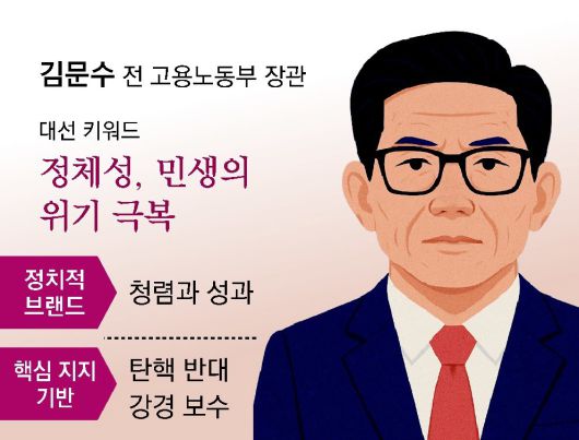 김 전 장관은 탄핵 반대 등 강성 보수 세력을 지지 기반으로 삼고 있다. 장외집회에서 윤석열 전 대통령 탄핵 반대를 이끌었던 국민의힘 장동혁, 윤상현 의원이 김 전 장관 캠프에서 각각 총괄선거대책본부장과 선거대책위원장을 맡고 있다.