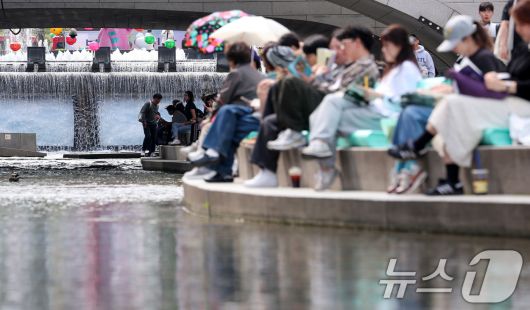 23일 오후 서울 중구 청계천을 찾은 시민들이 독서를 하고 있다. 2025.4.23/뉴스1 ⓒ News1 김성진 기자