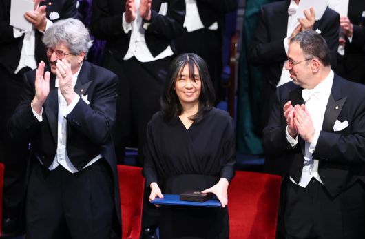 2024 노벨문학상 수상자인 한강 작가가 지난해 12월 스웨덴 스톡홀름 콘서트홀에서 열린 시상식에서 칼 구스타프 16세 스웨덴 국왕으로부터 노벨문학상 메달과 증서를 받은 뒤 환하게 웃고 있다. |