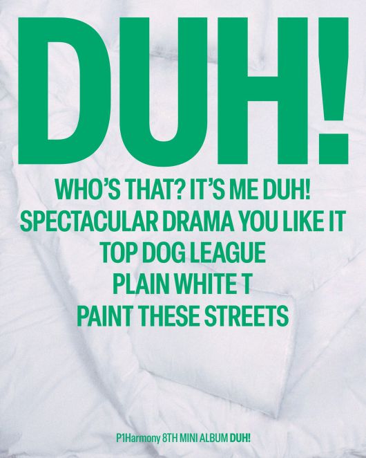 공개된 포스터에는 이번 앨범명이자 타이틀곡명인 ‘DUH!’ 타이포그래피가 크게 배치되어 가장 먼저 눈길을 사로잡는다. “WHO’S THAT? IT’S ME DUH!”, “SPECTACULAR DRAMA YOU LIKE IT” 등 가사로 유추되는 문장들도 곳곳에 쓰여 있어 곡에 대한 기대감을 증폭시킨다.