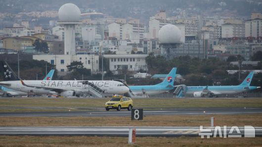 [제주=뉴시스] 제주국제공항에서 항공기가 활주로에 착륙한 모습. woo1223@newsis.com |