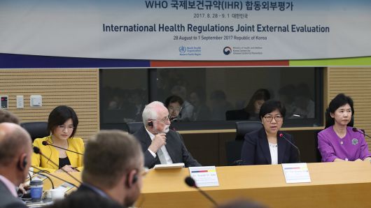 한국은 메르스 이후 국가방역체계 개편에 따라 2017년 처음으로 평가를 받았습니다.