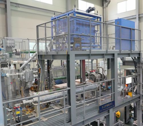 한국원자력연구원에 설치된 헬륨루프 고온 수전해 모듈 성능 시험 장치. 한국원자력연구원은 2024년 9월 포스코홀딩스와 함께 고온가스로를 모의해 헬륨가스의 열을 이용해 고온 수전해 시설에서 수소를 생산하는 시험에 성공했다. 한국원자력연구원 |