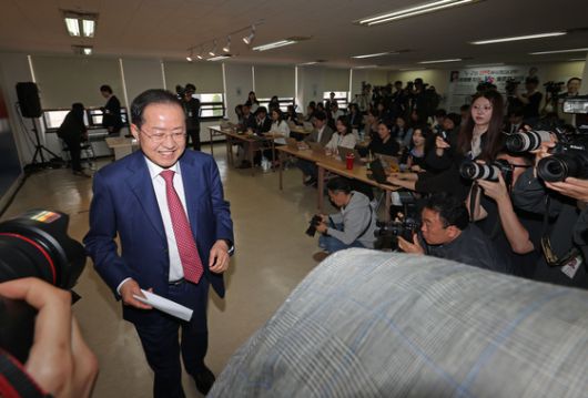 홍 후보는 이날 오전 서울 여의도 캠프 사무실에서 ‘긴급 기자회견’을 열고 “지금 우리 당 경선판이 옹졸하게 가고 있어 바꿔야겠다는 생각으로 나왔다”며 이같이 말했다.