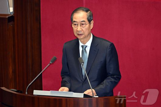 한덕수 대통령 권한대행 국무총리가 24일 서울 여의도 국회 본회의장에서 2025년도 제1회 추가경정예산안에 대한 정부의 시정연설을 하고 있다. (공동취재) 2025.4.24/뉴스1 ⓒ News1 이재명 기자 |