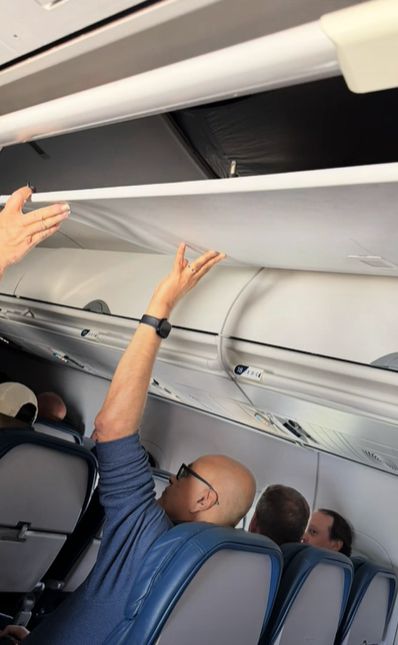 승객들이 천장 패널을 손으로 받치고 있다. [사진 = 루카스 마이클 페인 틱톡] |