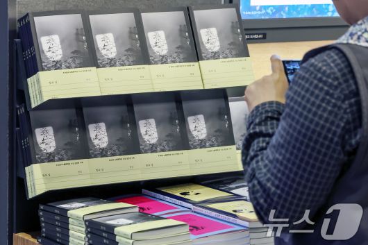 (서울=뉴스1) 민경석 기자 = 24일 오전 서울 종로구 교보문고 광화문점에 한강 작가의 신작 산문집 '빛과 실'이 진열돼 있다. 이번 신간은 노벨문학상 수상 강연문 '빛과 실'(2024)을 포함해 미발표 시와 산문, 그리고 작가가 자신의 온전한 최초의 집 '북향 방'과 '정원'을 얻고 써낸 일기를 포함한 총 열두 꼭지의 글이 사진과 함께 묶였다. 2025.4.24/뉴스1