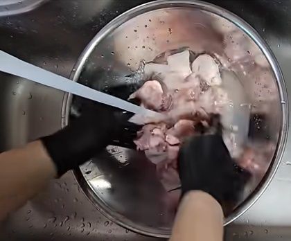 생닭을 물에 씻고 있는 모습 [유튜브 포켓생물] |