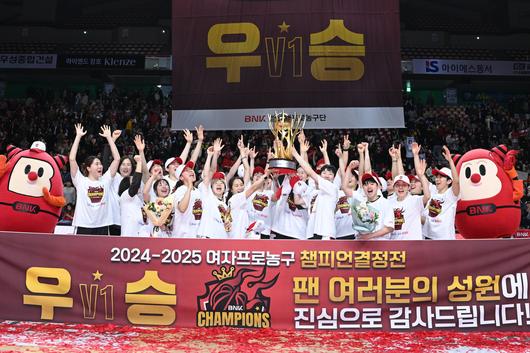(서울=뉴스1) 서장원 기자 = 창단 후 첫 여자프로농구 챔피언결정전 우승을 차지한 부산 BNK가 26일 부산은행 본점 2층 오션홀에서 팬 미팅을 진행한다.