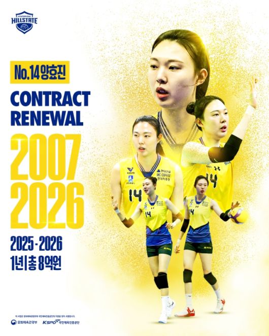 현대건설은 “팀의 상징과도 같은 양효진과의 재계약은 배구 명가로서의 정체성과 전통을 이어가기 위한 결정”이라며 “또 한 번 팬들의 사랑과 응원에 보답하는 시즌을 만들어 가겠다”고 전했다.