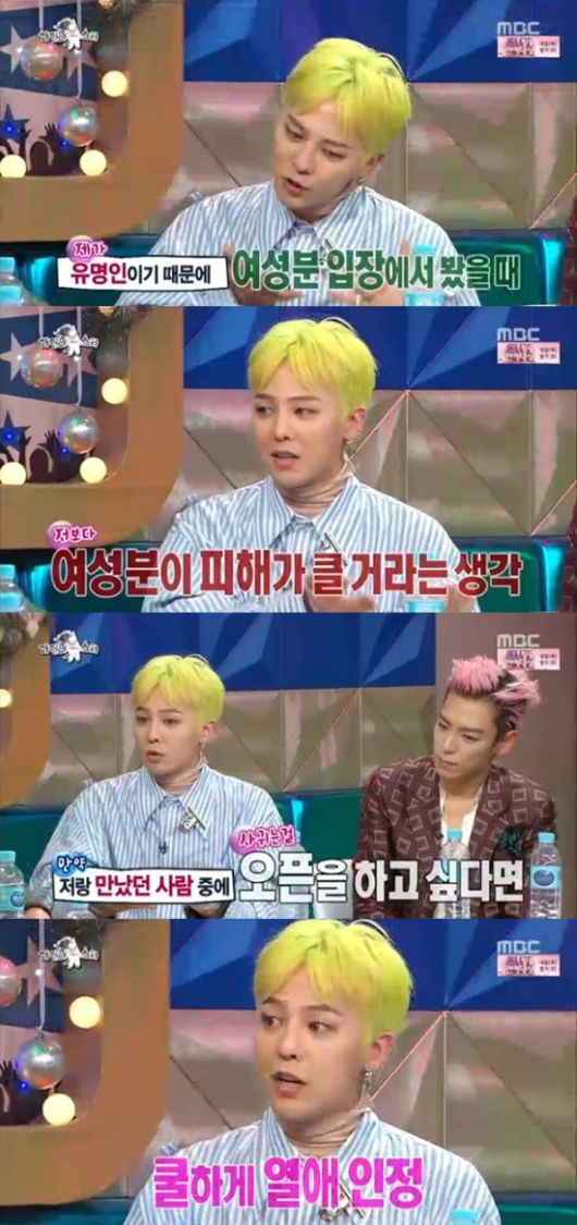 지드래곤은 MBC 예능 '라디오스타'에서 미즈하라 키코 및 고마츠 나나와의 결별·열애설에 대해 확실하지 않다고 애매모호한 답을 내놨다.