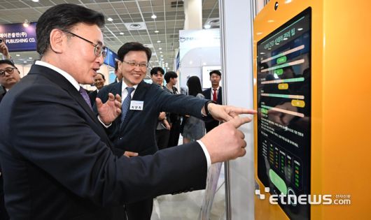 국내 최고 정보통신기술(ICT) 축제 '월드IT쇼(WIS) 2025가 24일 서울 강남구 코엑스에서 열렸다. 유상임 과학기술정보통신부 장관(왼쪽)과 최양희 국가과학기술자문회의 부의장이 바이오커넥트의 바이탈트래커가 측정한 유 장관의 건강상태를 살펴보고 있다. 이동근기자 foto@etnews.com [Copyright © 전자신문. 무단전재-재배포금지]