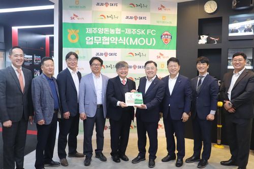 (서울=연합뉴스) 이영호 기자 = 프로축구 K리그1 제주SK FC(대표이사 구창용)가 제주양돈농협(조합장 고권진)과 제주양돈산업·스포츠산업 발전을 위한 업무협약을 체결했다고 24일 밝혔다.