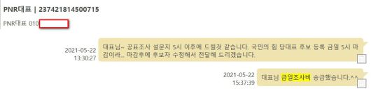 ..여기 언론인들 다 아시겠지만 여의도 바닥에서 여론조사 결과가 몇 시간 전에 일찍 도는 것은 특별한 일이 아닙니다. 그것을 인용해서 뭐, 제가 미리 공표를 한다든지 아님 제 홍보 활동에 사용한다 하면 그것은 문제겠지만 법에도 그런 것을 규정하는 것은 없는 것으로 알고 있고..그런데 이게 끝이 아니었다. '명태균PC'에서 복원한 '이준석-명태균'카톡에는 이 후보가 명 씨부터 최소 4차례에 걸쳐 당대표 여론조사 결과보고서를 미리 받는 장면이 나온다.