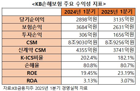 KB손보 투자손익은 증가했지만 올해 1분기는 자동차보험 손해율 악화 여파로 보험손익이 감소했다.